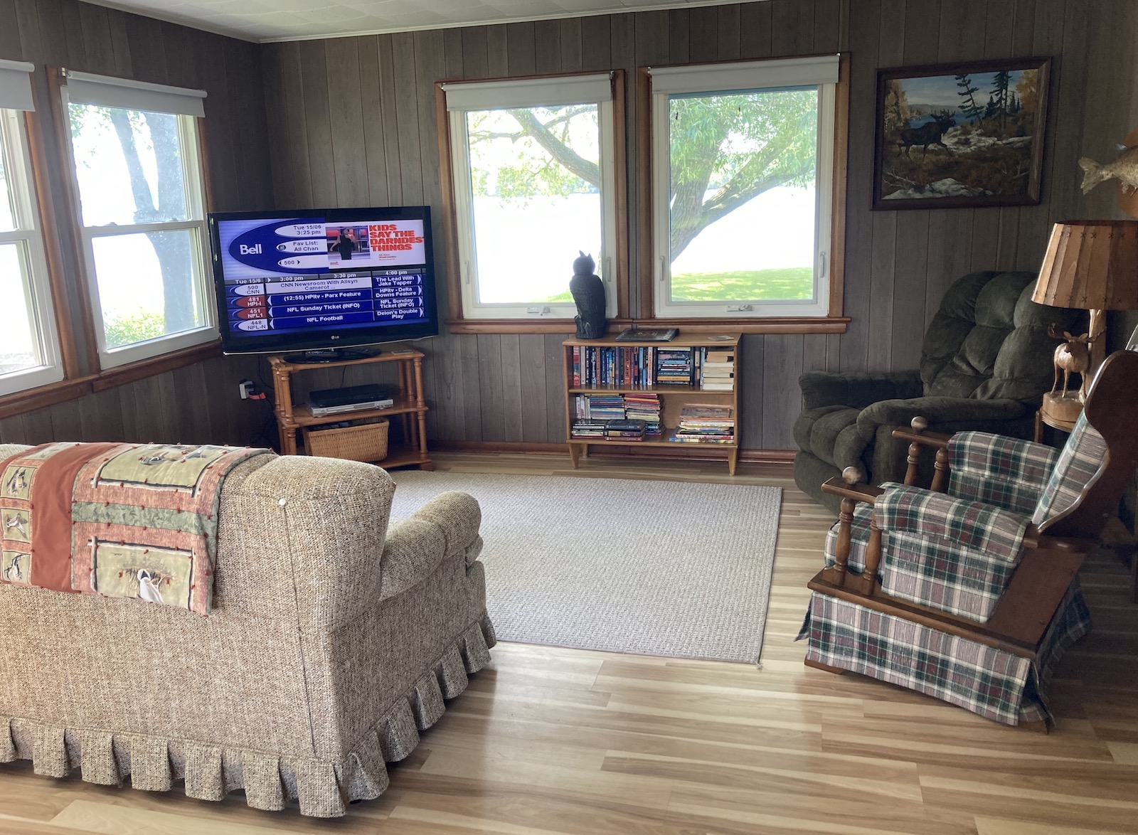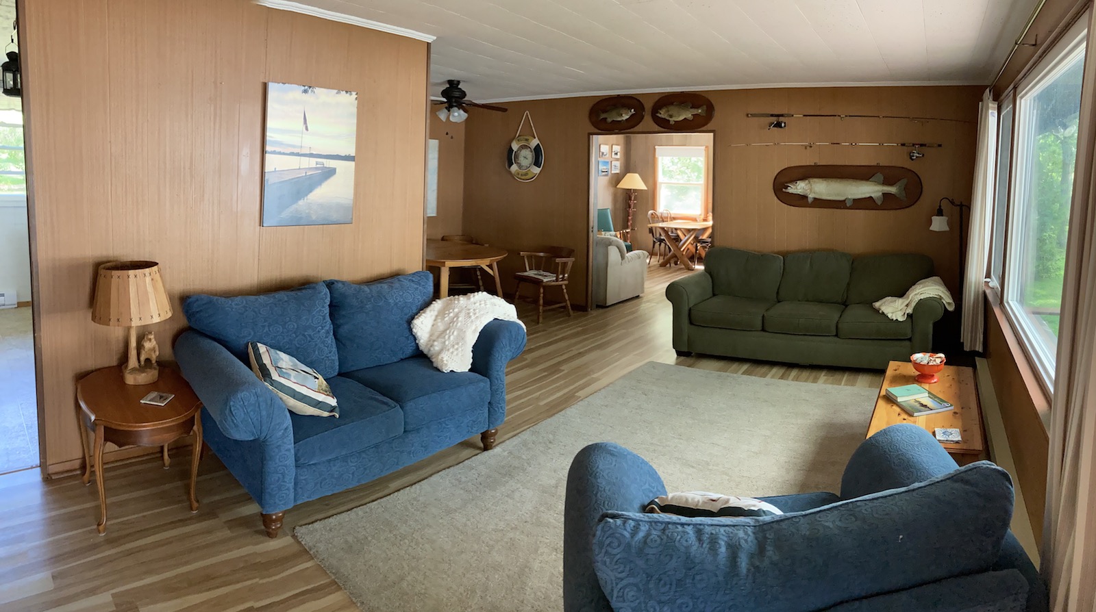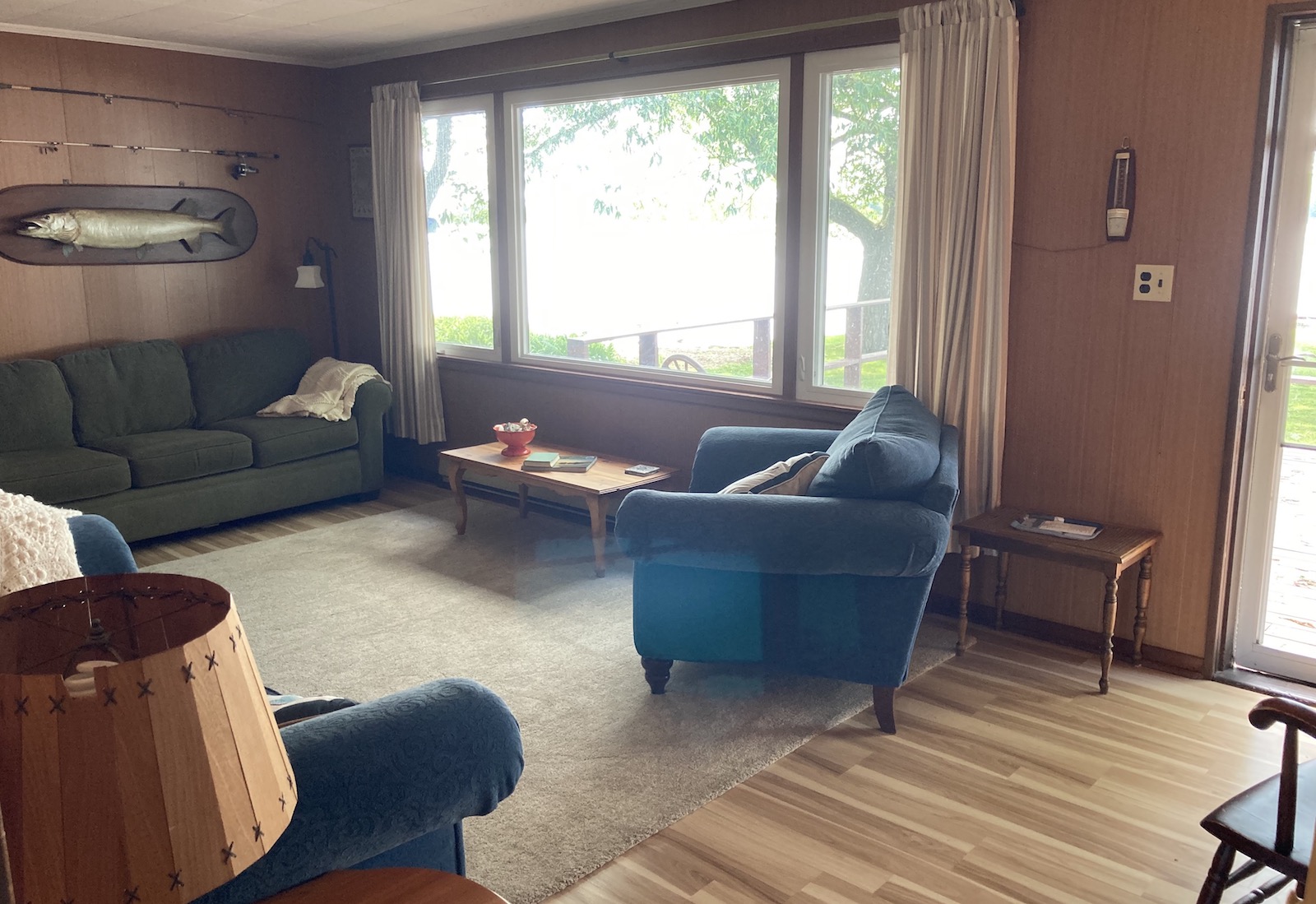 This bright and expansive room on the west side of the cottage is completely surrounded by operating windows.