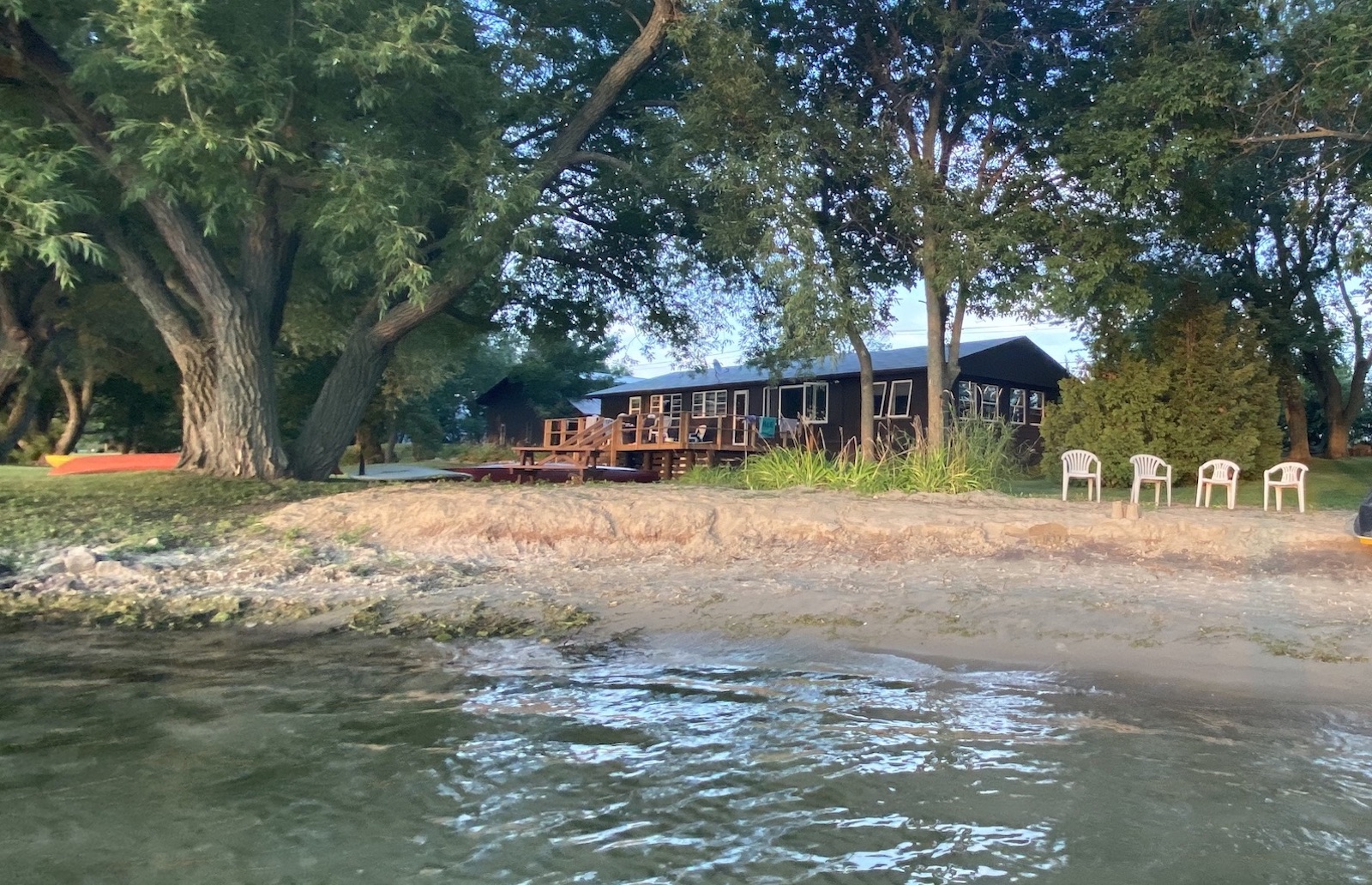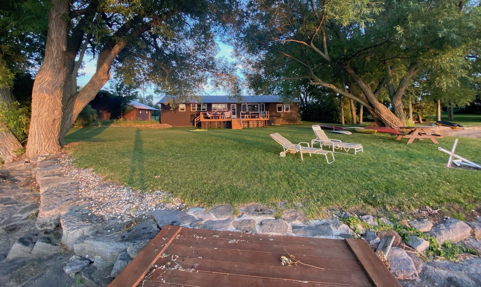 Situated on the north shore of Wolfe Island, looking out over the Bateau Channel, the Willows cottage is bordered by mature trees and thick lawns. The property is dotted with several perennial flower gardens. There is a small shallow beach perfect for kids and launching kayaks and paddleboards.