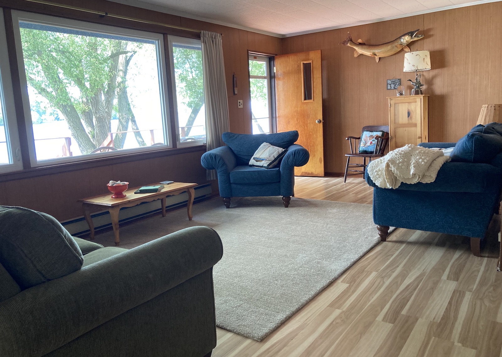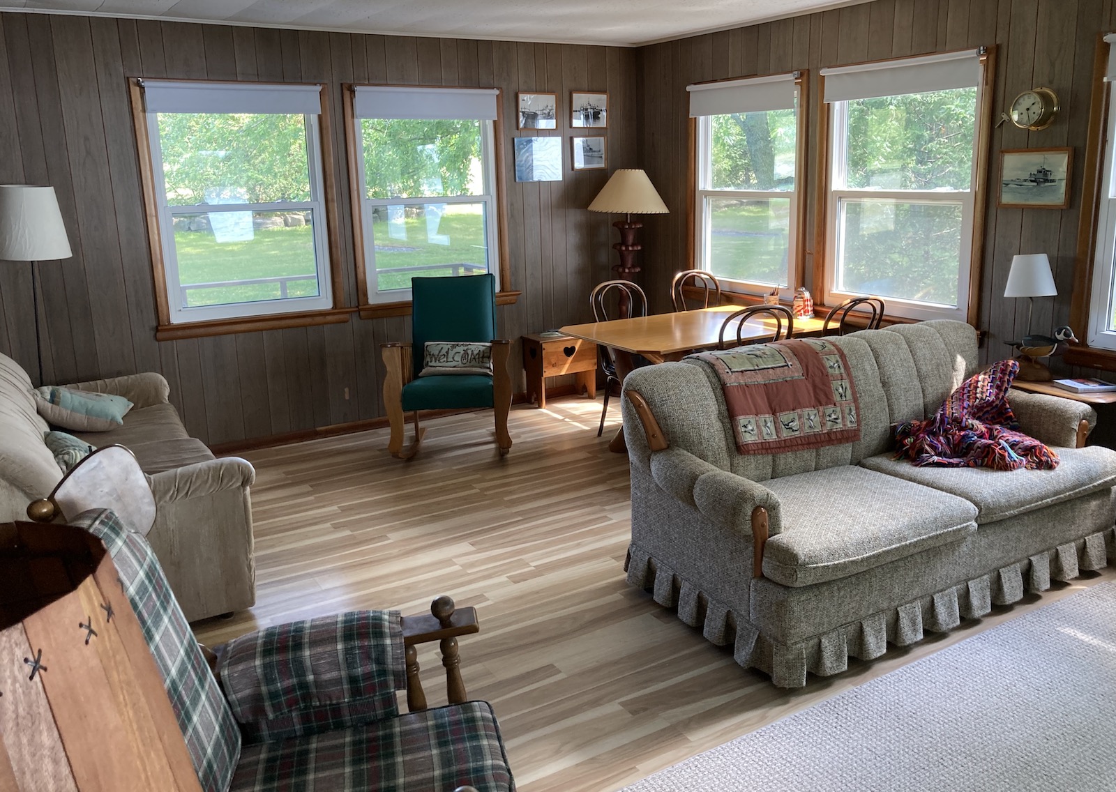 This bright and expansive room on the west side of the cottage is completely surrounded by operating windows.