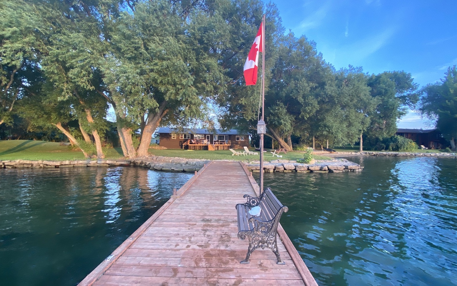 Situated on the north shore of Wolfe Island, looking out over the Bateau Channel, the Willows cottage is bordered by mature trees and thick lawns. The property is dotted with several perennial flower gardens. There is a small shallow beach perfect for kids and launching kayaks and paddleboards.